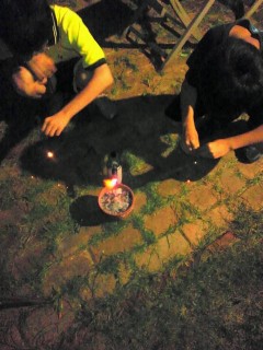 焼きを長男に任せたところで、小型のガスランタンのマントル交換。